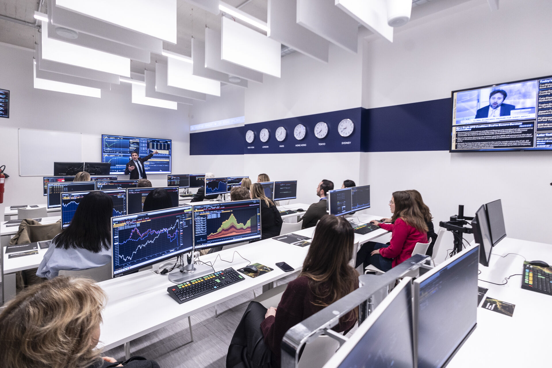 The trading rooms at ESCP’s Turin campus. The campus’ strengths in finance, luxury, digital transformation, and food have grown out of the Turin’s economy and history.