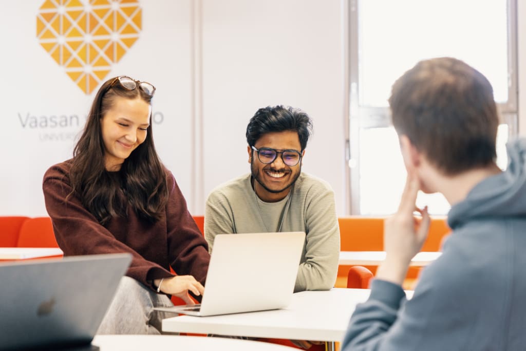 Students collaborate on campus at the University of Vaasa, where cross-disciplinary learning in business, technology, and energy transition is built directly into everyday coursework.