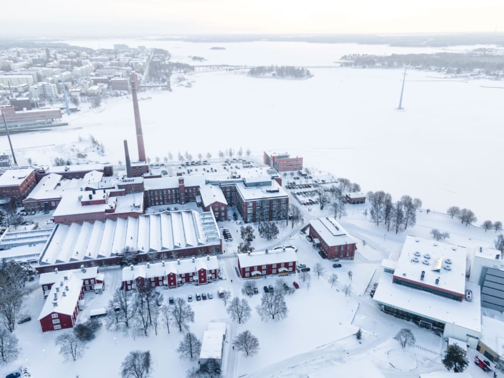 Snow blankets the University of Vaasa campus in winter, where the school’s close ties to Finland’s energy sector and its focus on sustainable business and long-term climate transition shape both research and teaching year-round.