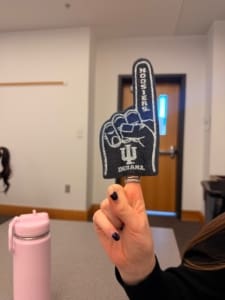 Among the students was Jordan Young, a marketing senior. She and her team opted for the IU-branded item – which ended up being a 3-inch foam “No. 1” finger.